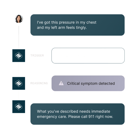 Our expert engineers and strategists work directly with your team to architect the core components of your agent’s ‘brain’: how it thinks, behaves, and navigates patient interactions. The result is an agent purpose-built for your care model.